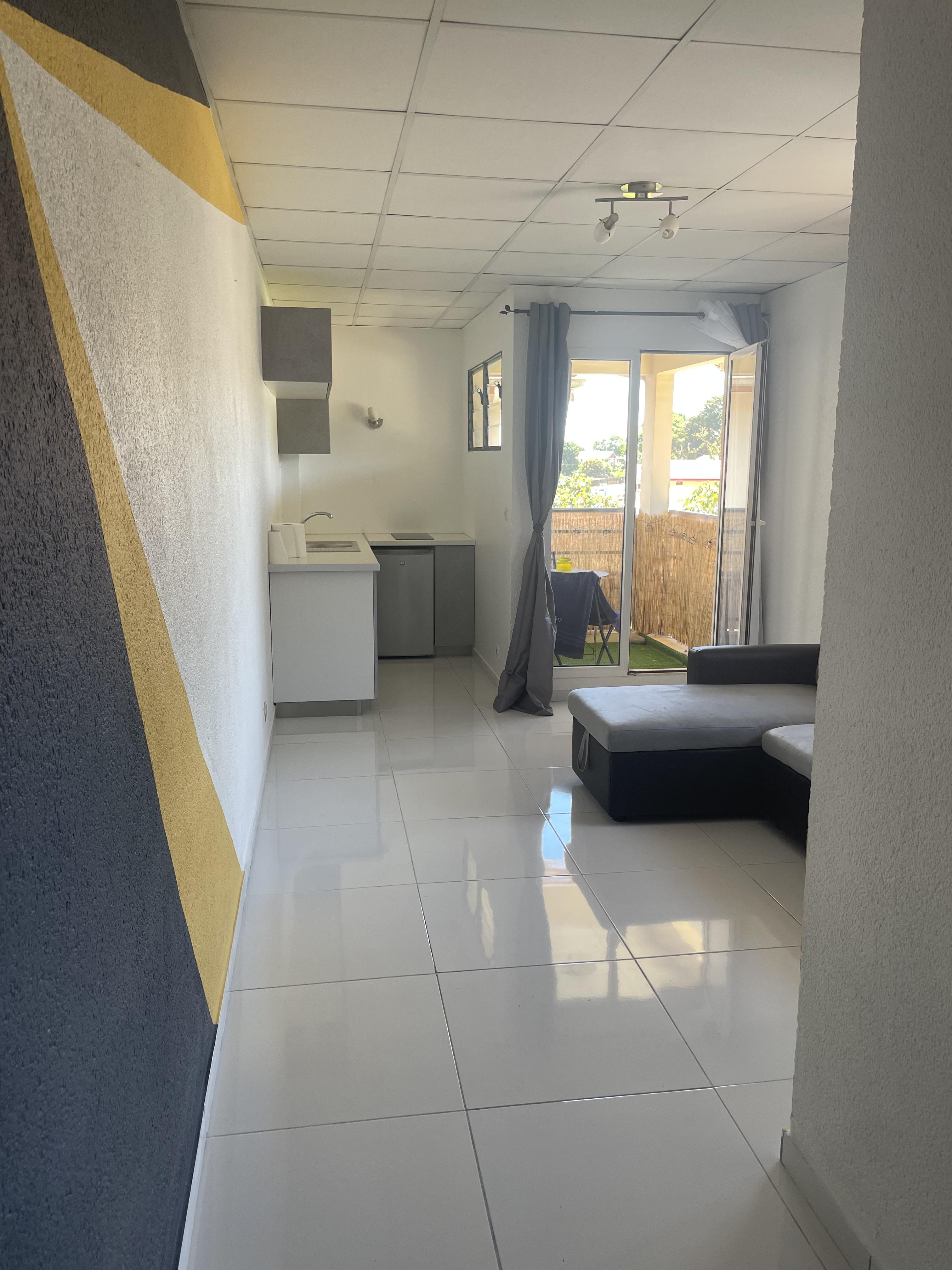 Appartement 1 pièce situé à Cayenne dans la résidence Éden vert 1, au troisième étage d'un immeuble comprenant un parking sécurisé et une piscine privative.